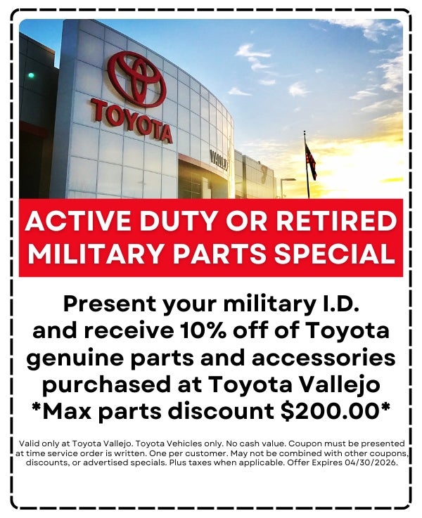 By clicking this box, I agree to receive in-person or automated telemarketing calls and texts from Toyota Vallejo at the number I entered. I understand that my consent is not required for purchase.